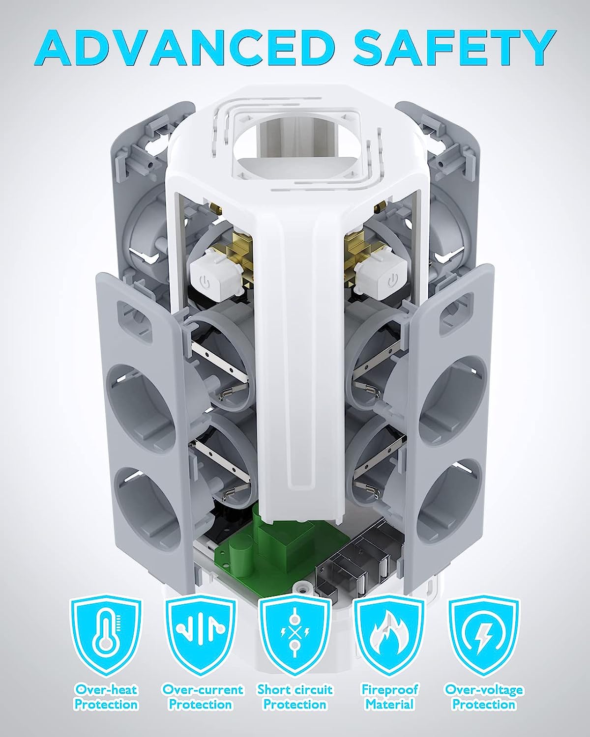 - Überlegene Sicherheit: Die steckdosenleiste mit usb hat die CE- und RoHS-Zertifizierung bestanden und verwendet fortschrittliche feuerfeste Materialien. Wenn das Netzteil überlastet / überhitzt / kurzgeschlossen ist, löst der zuverlässige Überlastschalter automatisch aus, um Ihre Geräte zu schützen.