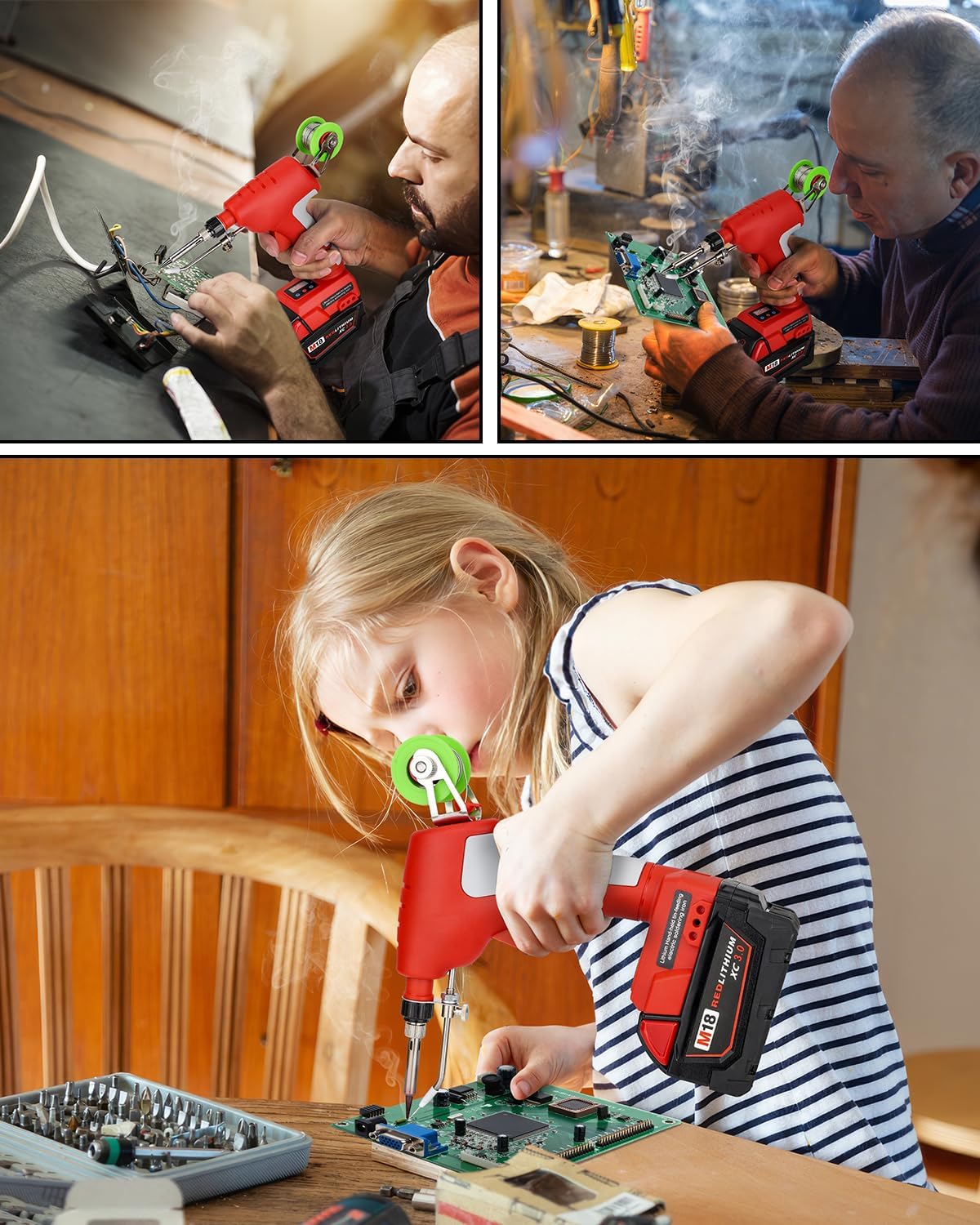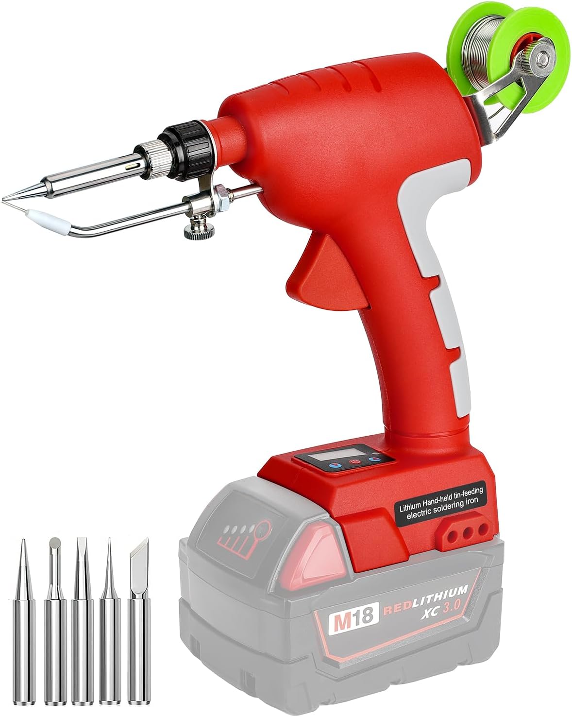 Schnurloses Lötkolbenset für Milwaukee 18v LXT Akku,75W LED Lötpistole mit 5 Stück Spitzen