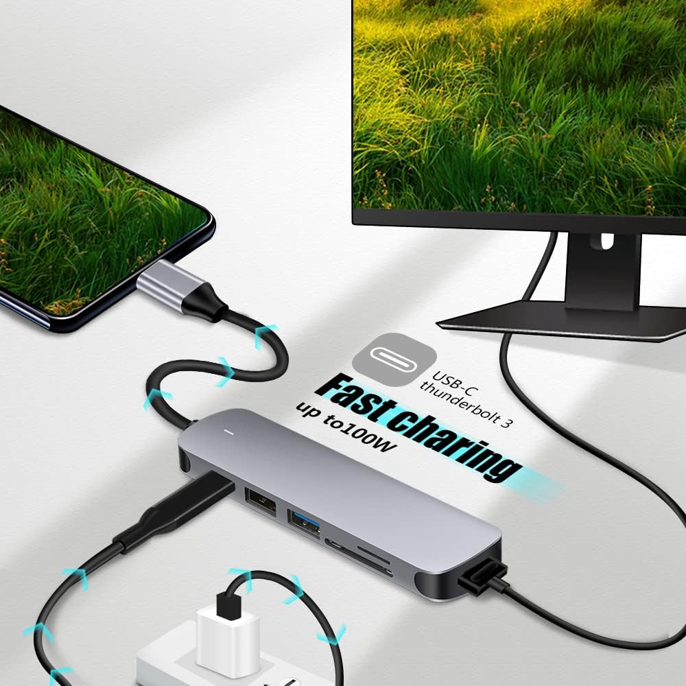 Shanfeng 6 in 1 USB C Hub HDMI, USB C Adapter MacBook Pro/Air Adapter