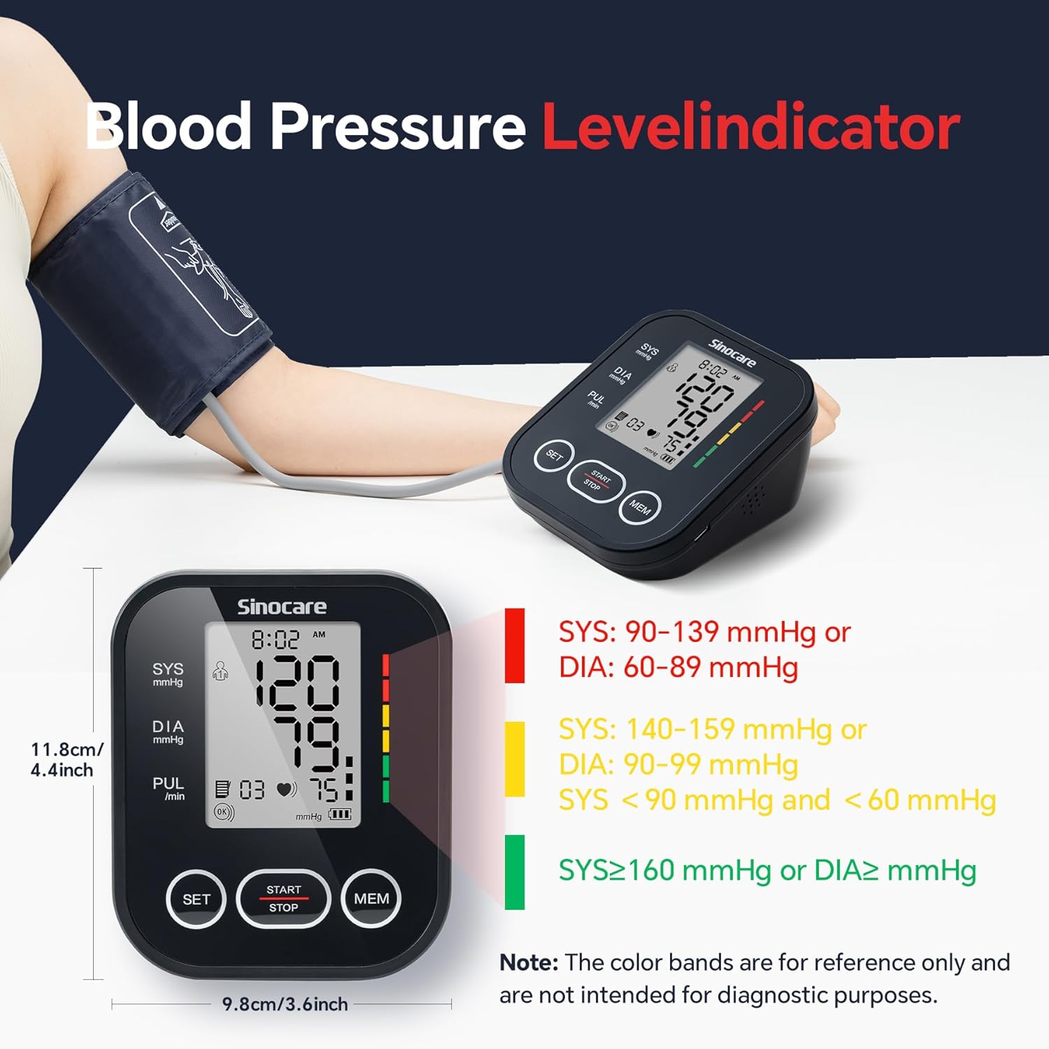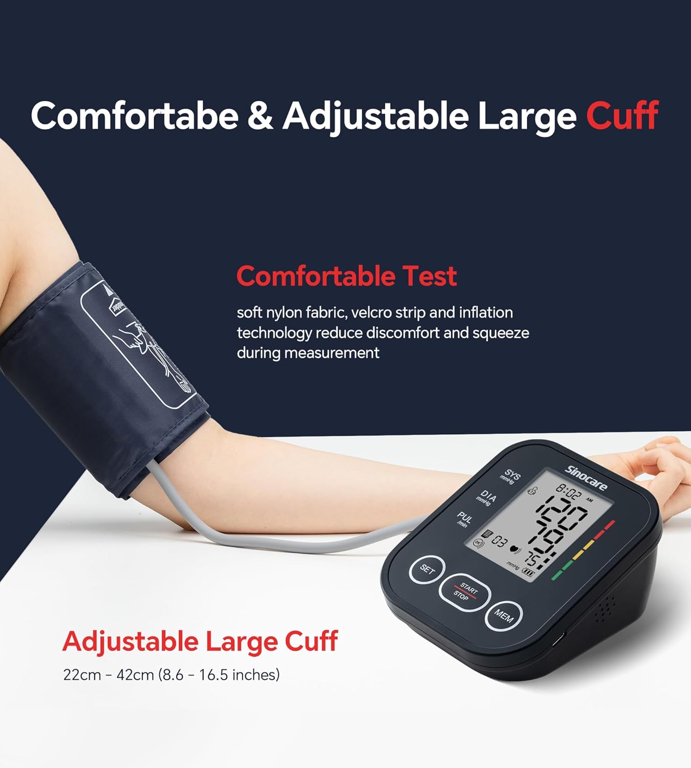 Sinocare Blutdruckmessgerät Oberarm, Vollautomatisches Blutdruck Messgerät für Zuhause, Blutdruckmessgerät Große Manschette, Blood Pressure Monitor