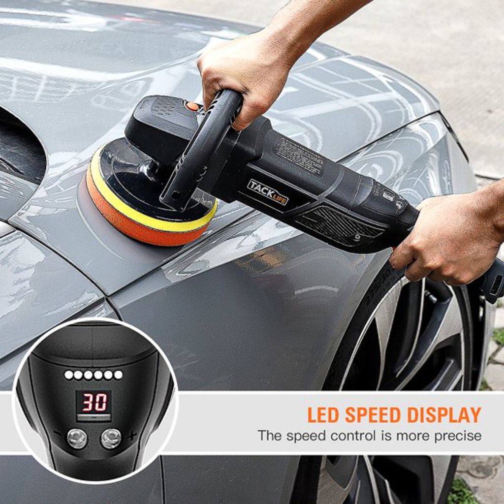 Tacklife PPGJ01A 7-Zoll-12,5-Ampere-Poliermaschine mit variabler Geschwindigkeit, digitalem Bildschirm und LCD-Anzeige, abnehmbaren Griffen
