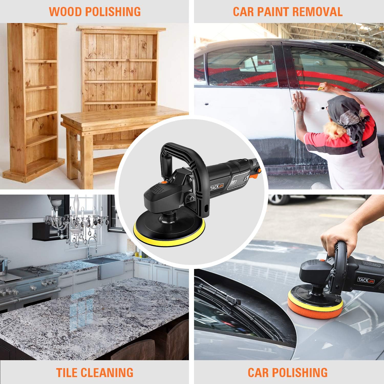 Tacklife 1500W PPGJ01A 7-Zoll-12,5-Ampere-Poliermaschine mit variabler Geschwindigkeit, digitalem Bildschirm und LCD-Anzeige, abnehmbaren Griffen