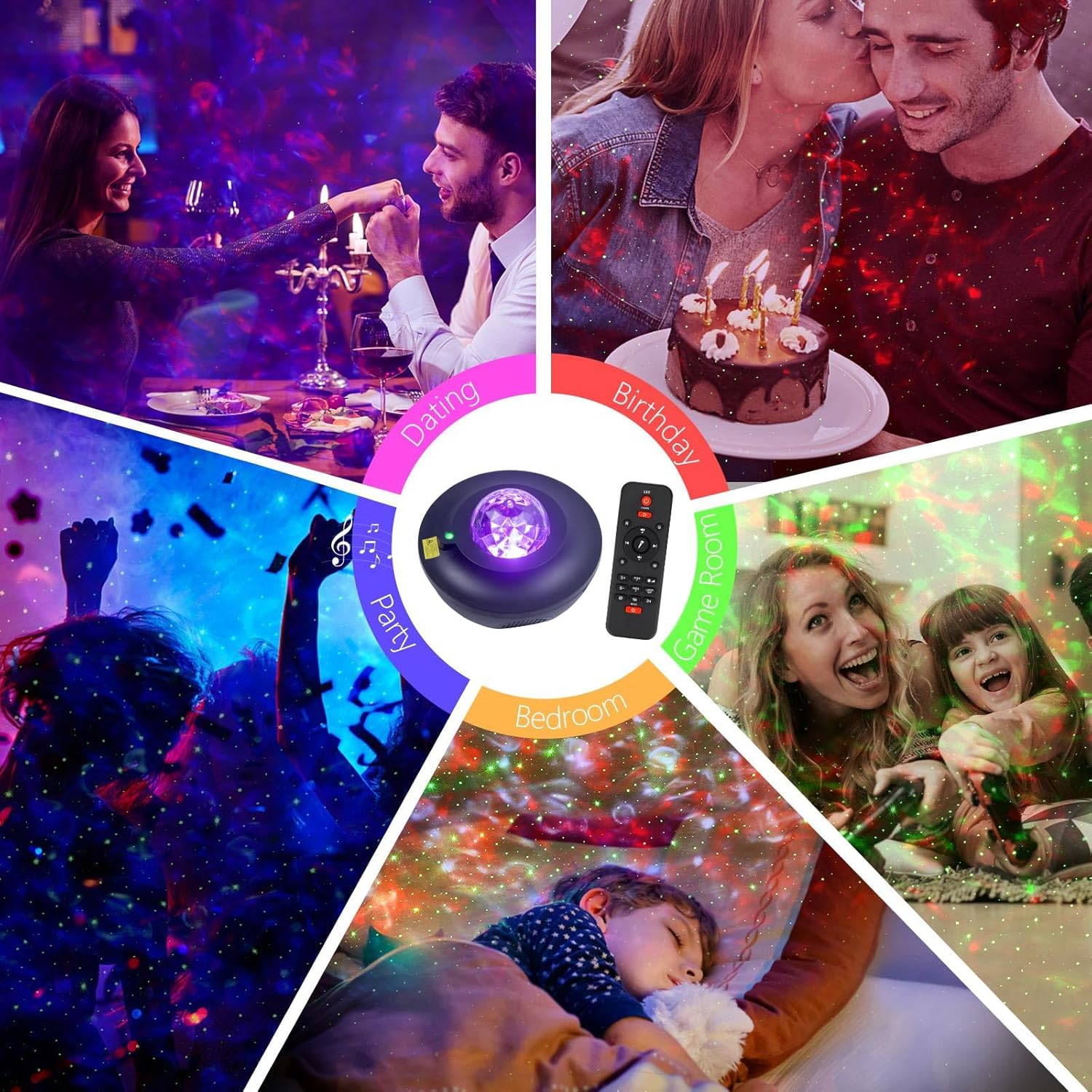 LED-Sternenhimmel-Projektor: Der RGB-Sternenprojektor bietet vier Grundfarben (Blau, Rot, Grün und Weiß) für die dynamische Projektion von Meereswellen. Per Fernbedienung und mobiler App wählen Sie den passenden Beleuchtungsmodus für Ihre Stimmung und Umgebung. Der Sternenhimmel-Projektor verwandelt Ihr Zuhause in eine Ozean- oder Weltraumwelt – perfekt für Feste, Partys und romantische Momente.