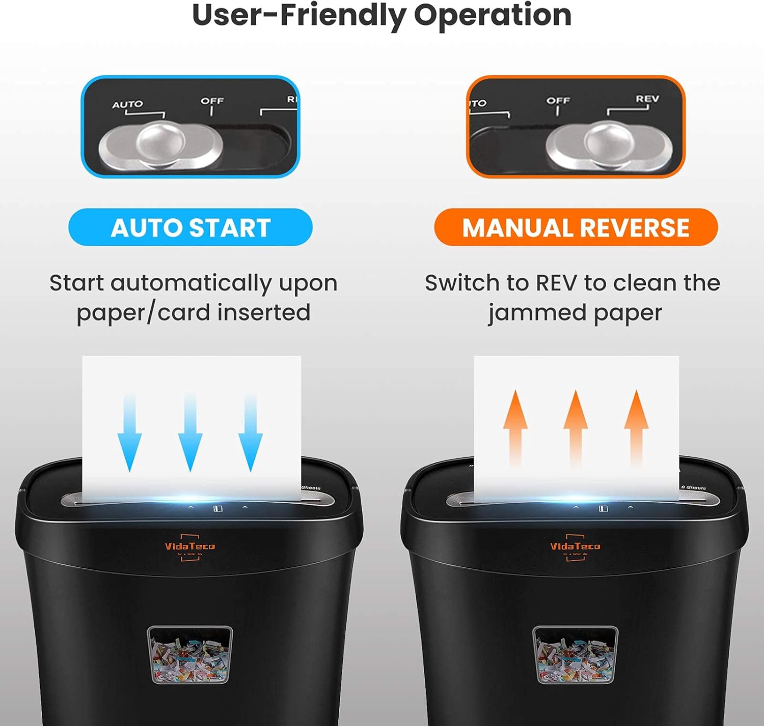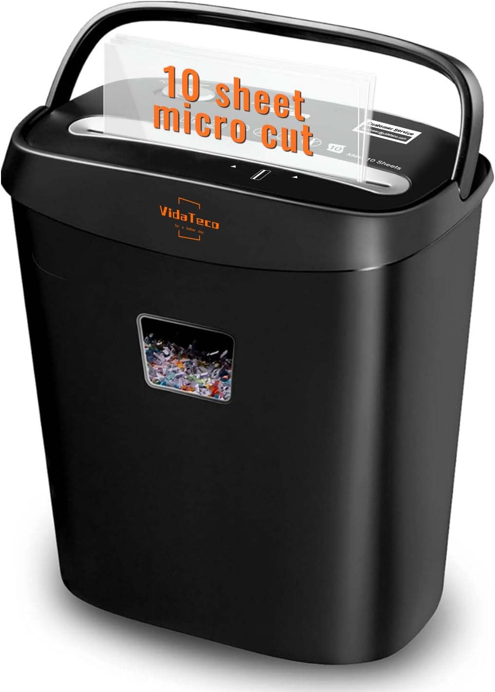 Vitadeco Schredder, 10 Blatt Querschnitt (P-4) Aktenvernichter, VidaTeco Partikelschnitt Papierschredder für Papier/Kreditkarten, Reisswolf mit Tragbares Griffdesign & 15L Behälter für Büros und Home, Schwarz