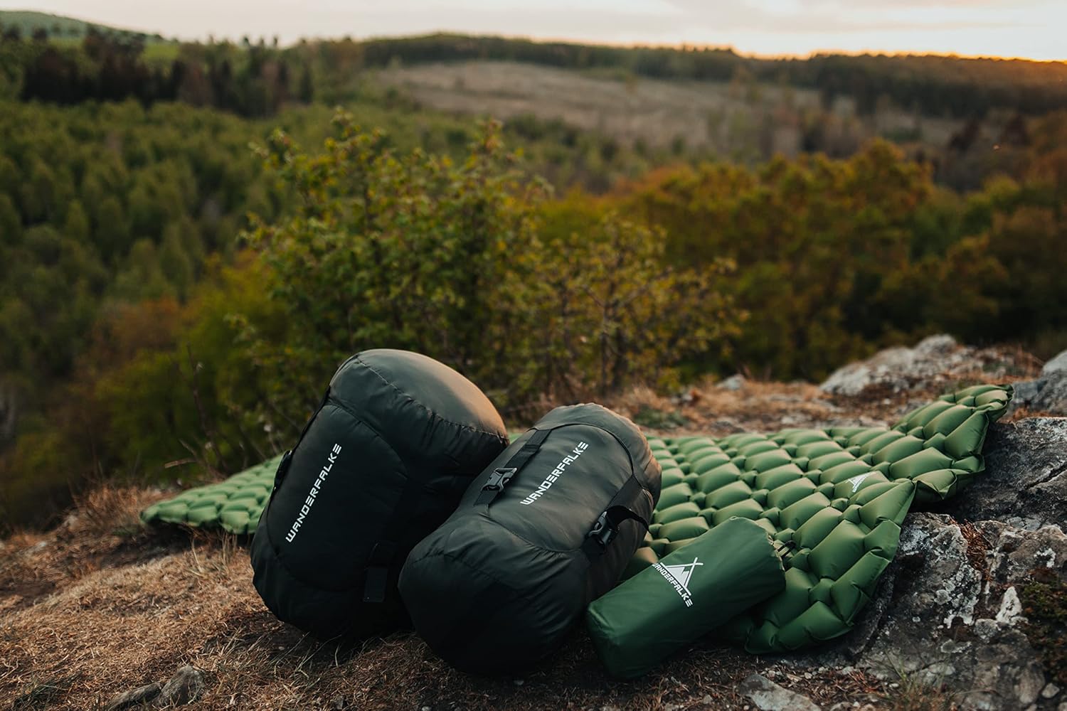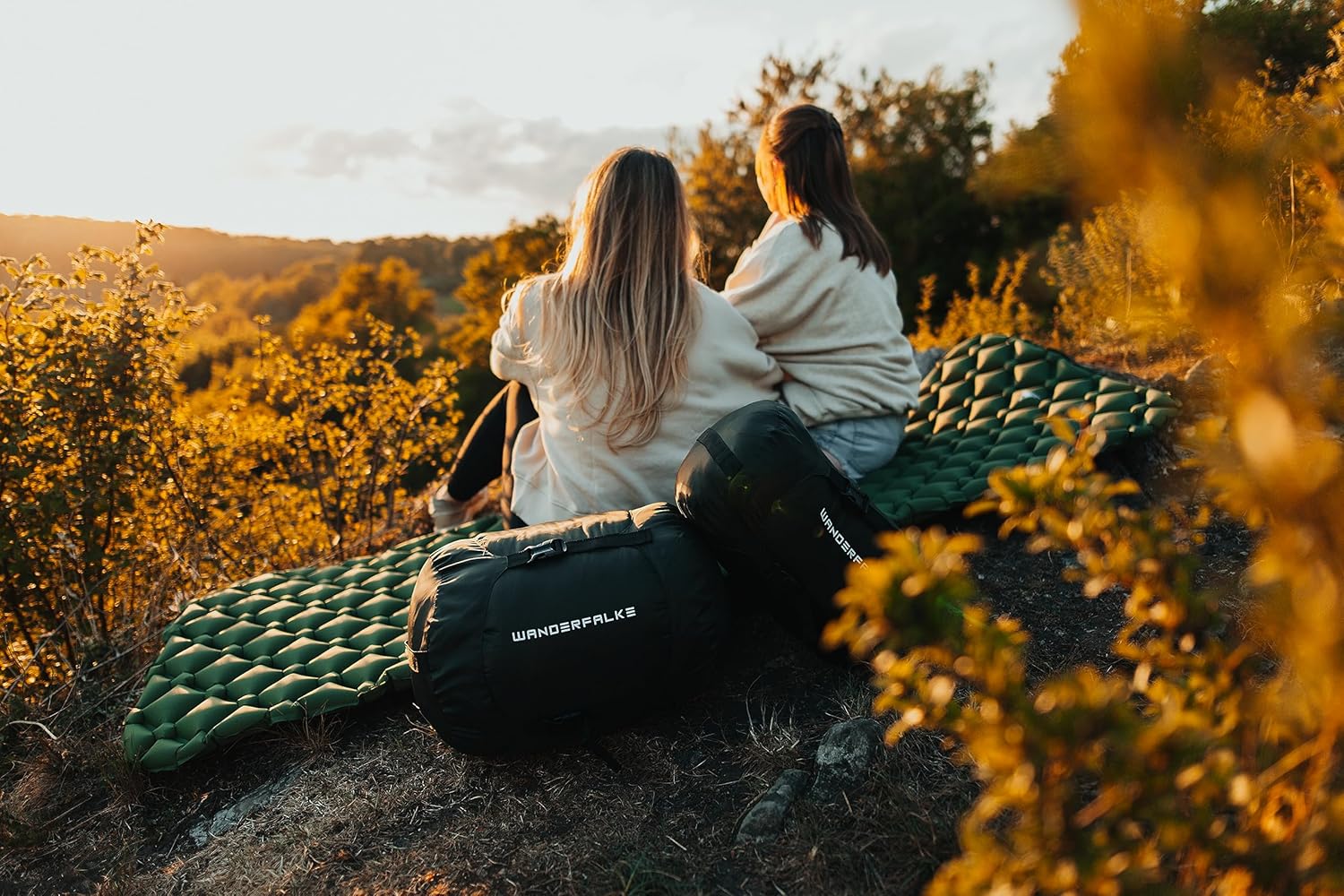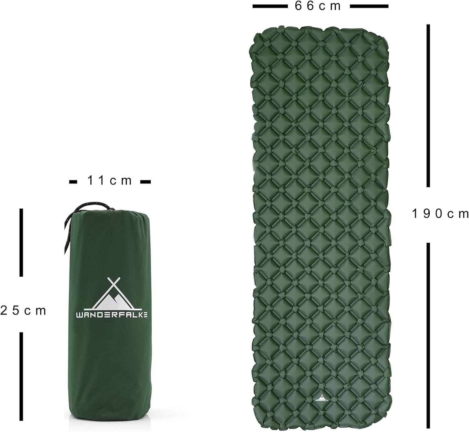 WANDERFALKE® Ultraleichte aufblasbare Isomatte – XL Breite 66 cm – Campingmatratze mit kleinem Packmaß für Outdoor, Camping, Wandern & Bikepacking