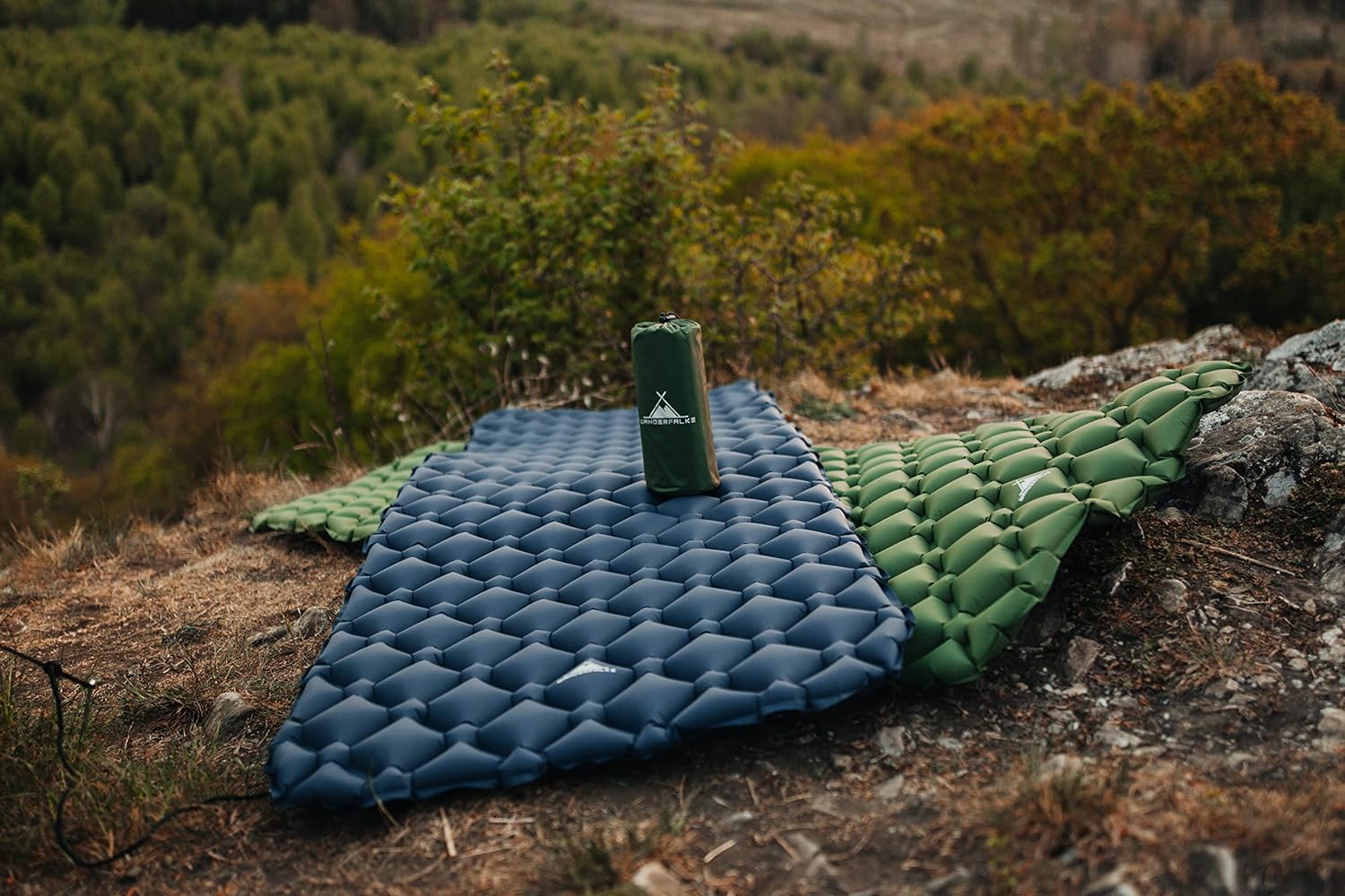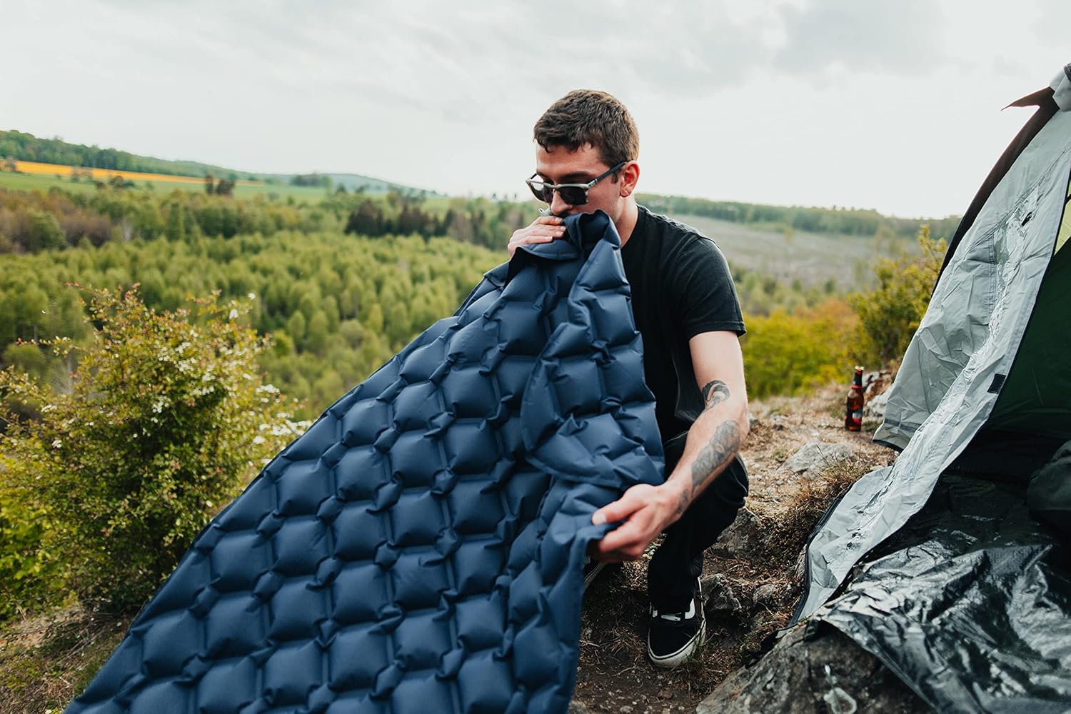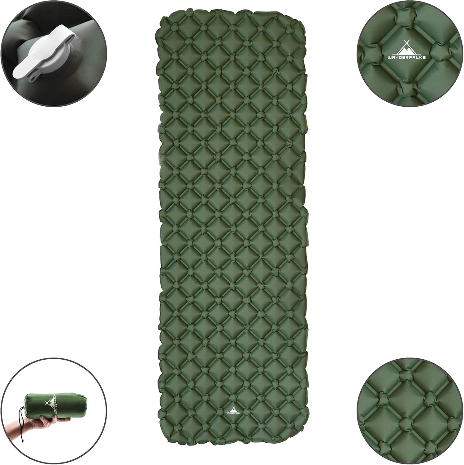 WANDERFALKE® Ultraleichte aufblasbare Isomatte – XL Breite 66 cm – Campingmatratze mit kleinem Packmaß für Outdoor, Camping, Wandern & Bikepacking