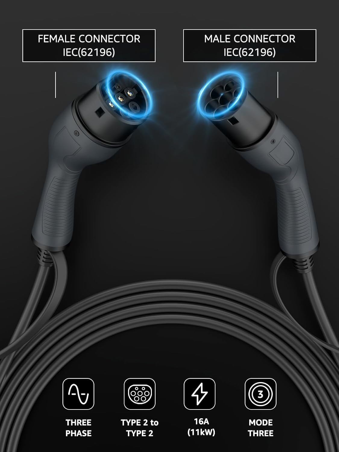 Vielseitige Kompatibilität: Dieses Kabel ist mit allen Elektrofahrzeugen kompatibel mit einem Ladestandard vom Typ 2 kompatibel, um eine breite Kompatibilität und Flexibilität zu gewährleisten. Egal, ob Sie Tesla, BMW, Nissan oder eine andere Marke besitzen, dieses Kabel funktioniert garantiert nahtlos.