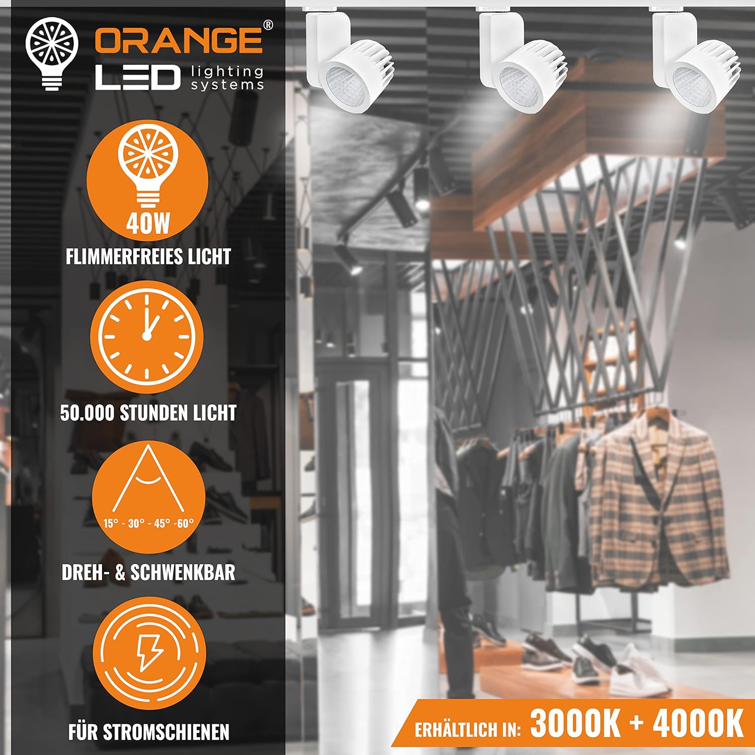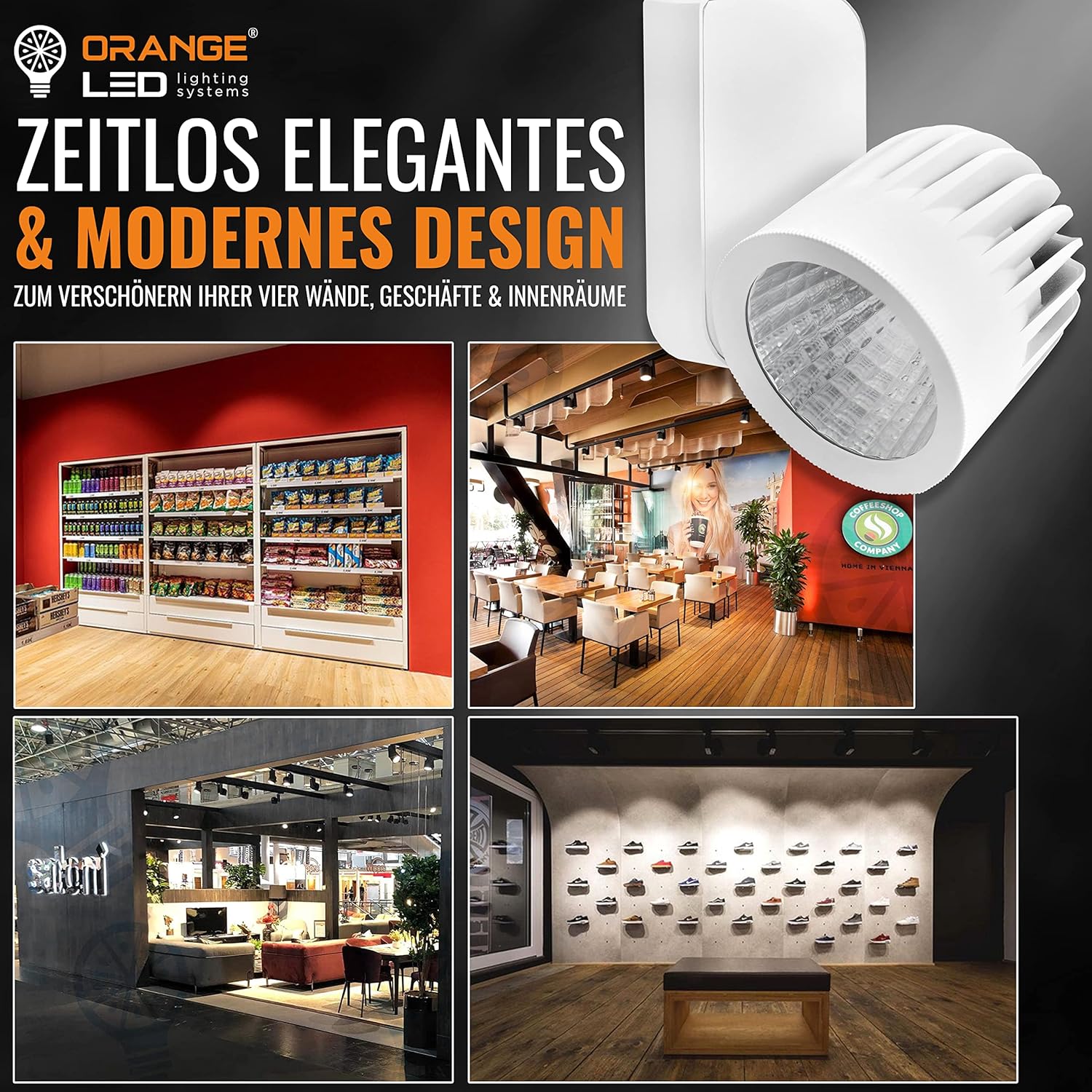 - ???????????????????????? ???????????????????????????????????? - Die Orange LED 3-Phasenen LED Strahler sorgen mit 50.000h angegebenen Betriebsstunden inkl. 3 jähriger Garantie für langanhaltende Freude und dienen ideal als LED Strahler für Verkaufsräume, Innenräume, Präsentationsräume, Messen uvm!